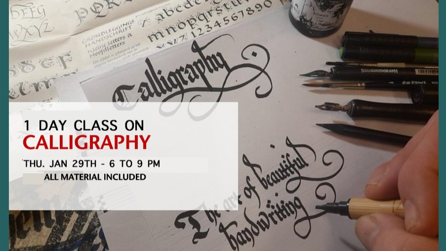**[1 DAY WORKSHOP ON CALLIGRAPHY](https://berlinschoolofdrawing.weebly.com/calligraphy.html)** **[the art of beautiful handwriting](https://berlinschoolofdrawing.weebly.com/calligraphy.html)** https://berlinschoolofdrawing.weebly.com/calligraphy.html THU. Jan 29th 2026 6 to 9 p.m. 45€ - ALL MATERIAL INCLUDED with Travis Hendrix Ever wanted to discover the art of beautiful hand writing? This beginners course will introduce you to calligraphy, it's materials techniques and practical applications. We will practice writing different styles and learn how to produce beautifully flourished written art pieces. POINTS OF THE CLASS: Intro to calligraphy. Understanding materials. inks, pens, papers Practice typestyles. Learn about flourishes and how to use them to complete a composition. Illuminated Capitals! Designing a cohesive, finished product Click here to book - cash or bank transfer: https://berlinschoolofdrawing.weebly.com/booking.html ***