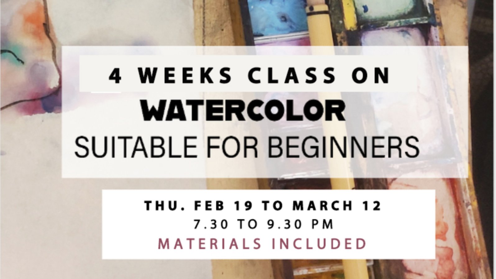 **[4 WEEKS CLASS ON](https://berlinschoolofdrawing.weebly.com/watercolortra.html)** **[WATERCOLOR for beginners](https://berlinschoolofdrawing.weebly.com/watercolortra.html)** THU. Feb 19th and March 12th 7.30 to 9.30 p.m. 110€ in total - **ALL MATERIAL INCLUDED** https://berlinschoolofdrawing.weebly.com/watercolortra.html **contact of the teacher:** travisd8@gmail.com In this course we learn about the medium, materials and techniques of watercolour painting. You will have the opportunity to experiment and play with materials and paint your own artwork. You will leave the course equipped with the skills and knowledge to continue your watercolour painting journey. WEEK I. Intro to watercolour. Materials, techniques and colour theory. Preping surface and stretching paper. Start a watercolour painting from a still life WEEK II. Put into practice what we have learnt painting from a still life / chosen image WEEK III. Painting on a botanical reference WEEK IV. Painting a landscape ***