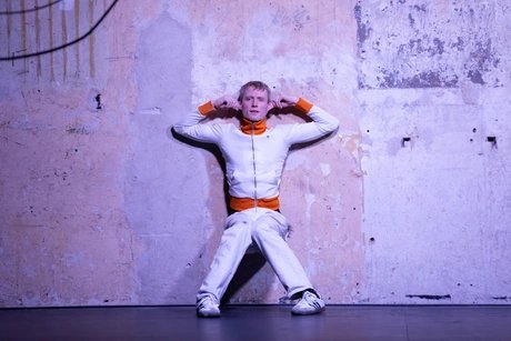 Release the Hounds presents a dance through crisis. Set on the performer's psyche—reminiscent of a ballroom or the basement of a nightclub—the spectacle depicts a man who cannot stop dancing.