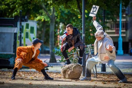Three performers follow the trail of foxes, for they represent the success story of the future. They search for them, hoping to become like them. What makes foxes so cunning? So alluring and mysterious? Can humans become like them? Can they learn to listen more closely to the urban foxes?