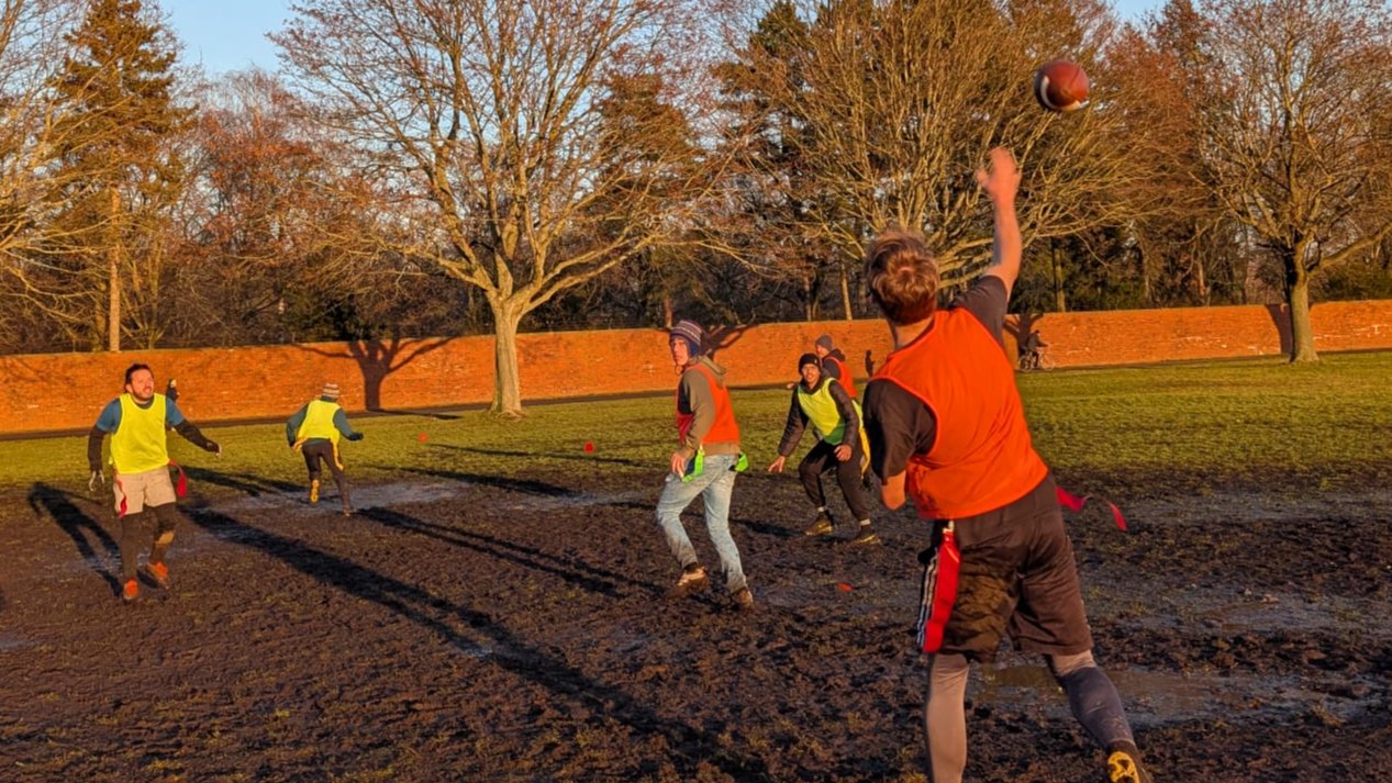 *...Football is Back! Yes! The temperature has risen, the ice has melted, no more IceFlagSaktingFootball!... All that remains is mud... lots and lots and looooots of mud....Yeeeeehaaaaaaaaaa!...* π Finding for something fun, energetic, and just a bit competitive? Join Us for a lot of Flag Football Fun this Sunday at **Tempelhofer Feld!** Weβll be meeting **from 13:00 onwards**, playing on the field right next to the Biergarten... or rather next to where the Biergarten is supposed to be... when it's warmer... now, like my buddy Phil likes to sing, *it's just an empty space* π **Attention New Players**: Donβt worry if the sign-ups look βlowβ. We play **every Sunday** and Friends a.k.a. *Regular Players* always magically appear from beyond this MeetUp, so Weβre always at least 11. Expect a wild mix of joy, fun, competition, trickery, music, drinks, laughter, dancing, and an overall a fantastic vibe. π... yellow flags included! π To find us easily, paste these coordinates into Google Maps: **52.478936, 13.410279** This Group is for anyOne who wishes to Play **American** **Flag Football**! Bring Your happiest smileβ¦ and cleats, theyβll come in veeeeeery handy π All skill levels are welcome β whether Youβre picking up a Football for the first time or ready to show off Your inner Sam Darnold, JSN or Christian Gonzalezπ¨π΄! πββοΈπ¨ And of course... donβt forget to bring some beers/tea/GlΓΌhwein (or whatever You fancy... like cake or cookies... now that would be something) for the post-game hangout. π» The field is about a 10-minute walk from the bus stop **M43 FriedhΓΆfe Columbiadamm**, and roughly a 20-minute walk from **U8 Boddinstr.** Looking forward to seeing **You** on the field β sharing joy, fun, challenges, trick plays and lots of laughter together! *Take what the Defense/Day/Life gives You - Me* ππ€