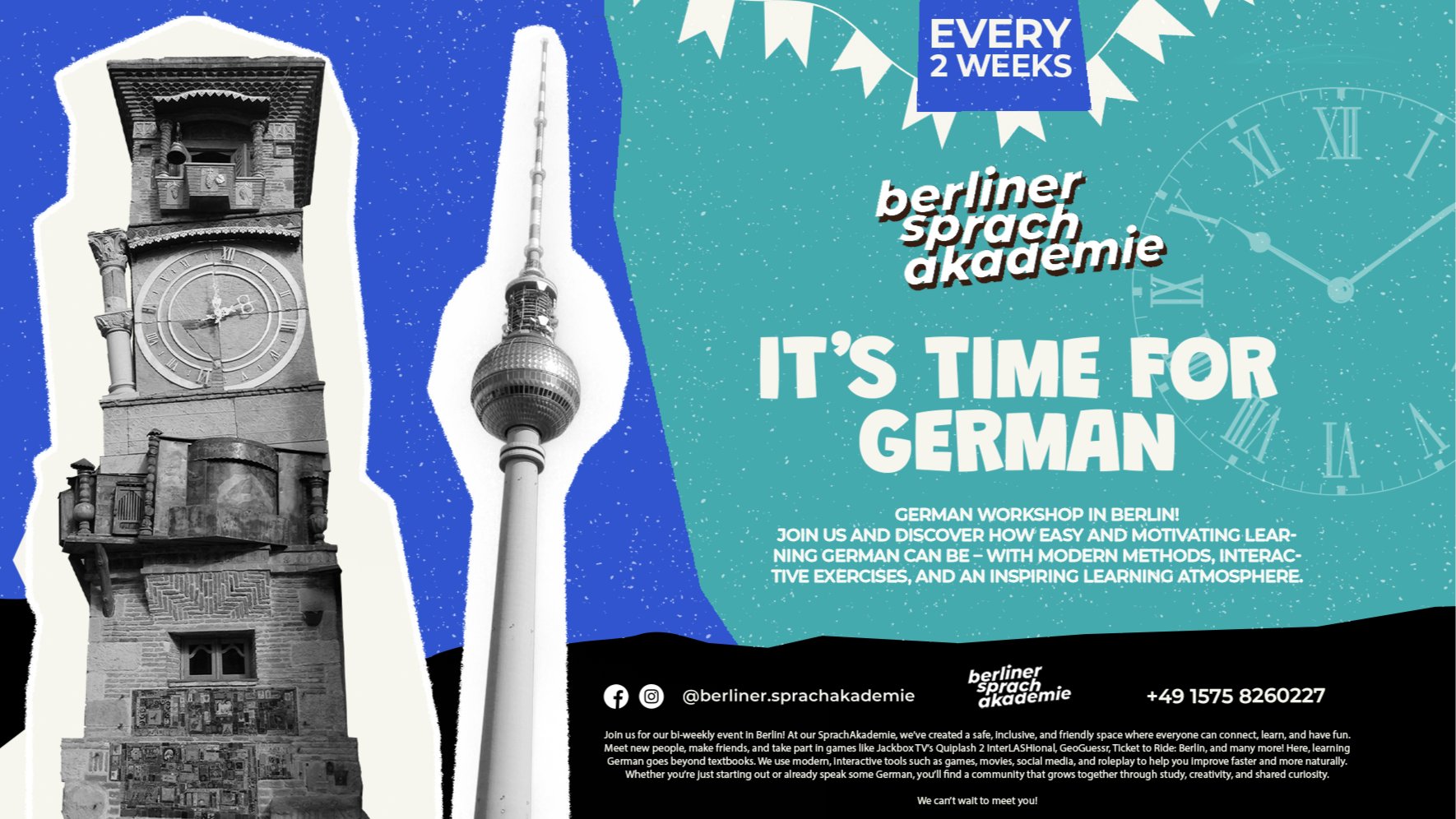 ✨ Exclusive German Workshop in Berlin! Join us and discover how easy and motivating learning German can be – with modern methods, interactive exercises, and an inspiring learning atmosphere. Live sessions, practical activities, and a welcoming environment await you. The tickets will be used to pay for the location. 📍 Berlin \| Coffee Fellows / Pappelallee 1\, 10437 Berlin\, · Berlin\, DE Don't miss out – places are limited! About us: Lia Bazerashvili, Tobias Balke, and Theodor Gavril. We represent Berliner SprachAkademie. Briefly from Tbilisi, Georgia, we've just opened our doors to students in Berlin as well. Our teaching style is modern, friendly, and supportive. We combine our experience to create German lessons where students overcome their fear of speaking. The lessons are held in a relaxed and friendly environment. We help each student individually, as everyone learns at their own pace. If you don't speak any German at all, that's no problem, because this course is designed for beginners. DEUTSCH: ✨ Exklusiver Deutsch-Workshop in Berlin! Entdecken Sie mit uns, wie einfach und motivierend Deutschlernen sein kann – mit modernen Methoden, interaktiven Übungen und einer inspirierenden Lernatmosphäre. Live-Sessions, praktische Übungen und eine herzliche Atmosphäre erwarten Sie. Die Eintrittskarten werden zur Bezahlung des Veranstaltungsortes verwendet. 📍 Berlin \| Coffee Fellows / Pappelallee 1\, 10437 Berlin\, · Berlin\, DE Jetzt anmelden – die Plätze sind begrenzt! Über uns: Lia Bazerashvili, Tobias Balke und Theodor Gavril. Wir sind die Berliner Sprachakademie. Wir kommen ursprünglich aus Tiflis, Georgien, und freuen uns, nun auch in Berlin Kurse anbieten zu können. Unser Unterrichtsstil ist modern, freundlich und unterstützend. Wir bündeln unsere Erfahrung, um Deutschkurse zu gestalten, in denen die Teilnehmer ihre Sprechangst überwinden. Der Unterricht findet in einer entspannten und freundlichen Atmosphäre statt. Wir betreuen jeden Teilnehmer individuell, denn jeder lernt in seinem eigenen Tempo. Auch wenn Sie noch kein Deutsch sprechen, ist das kein Problem, denn dieser Kurs ist speziell für Anfänger konzipiert.
