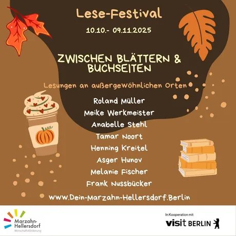 When the days grow shorter and autumn arrives, it's story time in Berlin. The reading festival ‘Zwischen Blättern & Buchseiten’ (Between Leaves & Book Pages) invites you on a literary journey through the Marzahn-Hellersdorf district – with exciting readings, extraordinary locations and a varied programme for young and old alike.