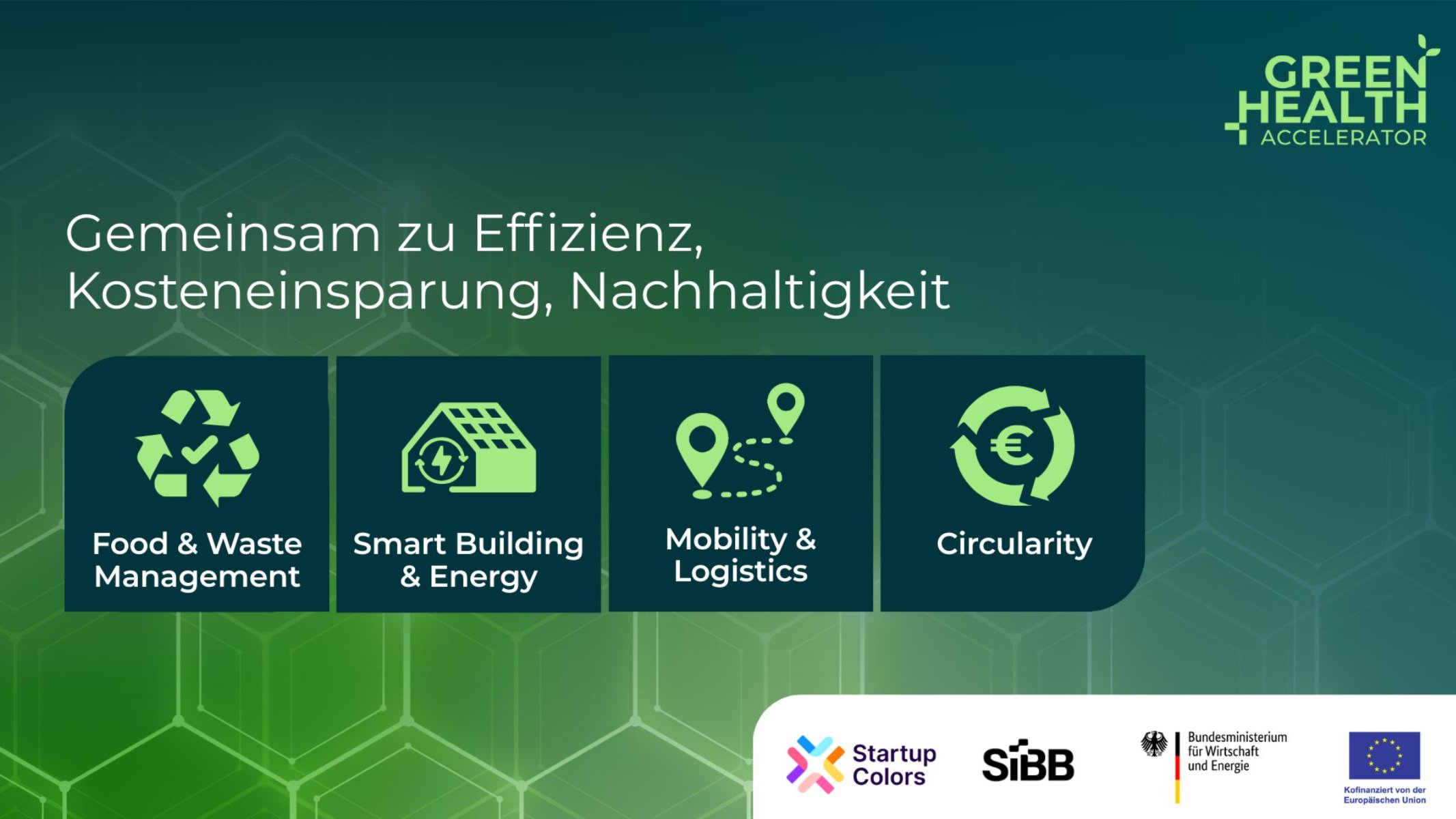 **Free registration only via Eventbrite :** 👉 https://www.eventbrite.de/e/1983244726364 👈 **\-\-\-\-\-\-\-\-\-\-\-\-\-\-\-\-\-\-\-\-\-\-\-\-\-\-\-\-\-\-\-\-\-\-\-\-\-\-\-\-\-\-\-\-\-\-\-\-\-\-\-\-\-\-\-\-\-\-\-\-\-\-\-\-\-\-\-\-\-\-\-\-** Healthcare is one of the most resource- and carbon-intensive industry - and presents a great commercial opportunity for climate tech founder ### The **Green Health Ecosystem Session** brings together healthcare experts, public-sector stakeholders, and Green Health startups in an **interactive, practice-oriented format** . ### **Expect a dynamic mix of:** * expert insights on real-world healthcare challenges * **reverse pitches** from healthcare practitioners * startup pitches & live feedback * open exchange, matchmaking, and collaboration across the ecosystem 📍 **What’s on the agenda?** * Welcome & introduction to the Green Health Accelerator * *Green Health in Practice* — panel / interview on real-world challenges and innovation needs * **Soft launch of the Green Health Startup Map** * **Reverse Pitch:** experts present concrete challenges from their organizations * **Startup Pitch Session:** Cohort 1 & 2 startups + expert jury Q&A * Networking, demos & informal exchange **This session is designed to:** * surface **concrete sustainability challenges** in healthcare, * showcase relevant startup solutions, * enable feedback, pilots, and future collaboration. 👉 Working in healthcare, the public sector, or building Green Health solutions? **\-\-\-\-\-\-\-\-\-\-\-\-\-\-\-\-\-\-\-\-\-\-\-\-\-\-\-\-\-\-\-\-\-\-\-\-\-\-\-\-\-\-\-\-\-\-\-\-\-\-\-\-\-\-\-\-\-\-\-\-\-\-\-\-\-\-\-\-\-\-\-\-** **Free registration only via Eventbrite :** 👉 https://www.eventbrite.de/e/1983244726364 👈