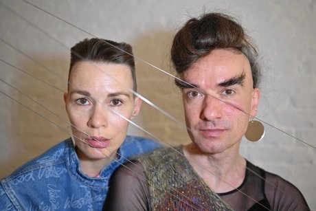 tIED tO tONES is a collaboration between harp artist Camille O (fka Hans Unstern) and choreographer Jule Flierl. Together they create a harp installation made of piano wire that crosses the Kantine space and is activated with bodies, voices and prostheses. They relate musical material from the Baroque with self-written and -composed songs, specifically created for the space harp.
