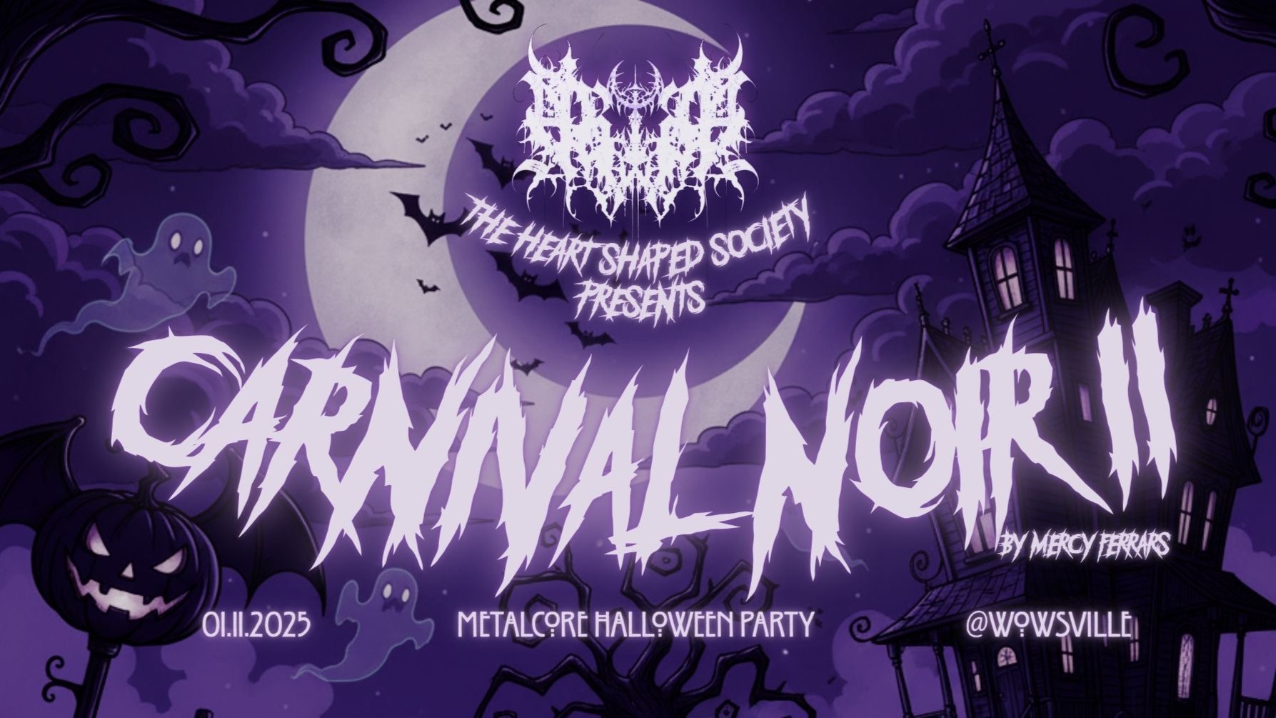 **Welcome, Children of Woe.** You are cordially, and perhaps unwisely, invited to a gathering of the morbid and the magnificent on this most haunted of weekends. **The Heart Shaped Society** invites you once more to a night of darkness with the return of its infamous **CARNIVAL NOIR** Halloween party. 🎵If you’re among the discerning few who regard joy as a psychiatric condition, this event offers temporary, albeit crushing, relief. We promise the soundscape will be heavy enough to be a tolerable experience for the properly afflicted soul. We will play the best from **metalcore** and **post-hardcore.** Consider yourselves knocked loose. Heh. 🎃**Costumes**: My little bats, you look most charmingly deathly already. It’s wonderfully unsettling. We observe your quaint adherence to costumes and dressing up with great pleasure. Feel free to engage in this form of self-delusion, or simply arrive as the ghastly masterpiece you already are. Your natural state of wretchedness is always sufficient. 🩸**Drinks**: Purchase your poison exclusively from the bar. We insist on this minor, necessary complication to your evening. **Please do not bring your own beverages.** 🕷️**Food**: Should your decaying metabolism demand sustenance, **we encourage you to contribute food**, whether store bought or selfmade, to the communal table. 👻**Entrance**: Five Euros must be surrendered at the threshold between the living and the dead (that threshold is your RSVP). **Early Bird Tickets will be available until Sun, Oct 19, 2025 - 11:59 PM for four euros.** This tribute will be wickedly squandered on a selection of unsightly snacks and a few pathetic trinkets to adorn this dark affair. We expect nothing less than utter disappointment. :3 You are welcome to bring up to 3 fiends or foes as your spooky plus ones, however you are required to sign them up here in advance.🖤 (**Refund Policy**: You will receive a full refund, minus the non-refundable processing fee charged by Meetup, if the event is cancelled by us. If your plans change and you can no longer attend, your ticket fee will be gratefully accepted as a donation to help cover the costs of the party. Unfortunately, we cannot offer refunds for attendee cancellations.) See you in the darkness, little vipers. **Inescapably Yours 🥀** **Mercy**