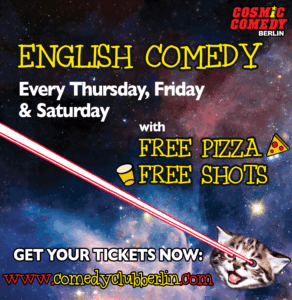 One of the longest-running English-speaking comedy clubs in Berlin—Cosmic Comedy Berlin—is your go-to spot for a night of laughter, community, and good vibes in the heart of Berlin-Mitte / Prenzlauer Berg. 🎤 Weekly Events: Thursdays – Open Mic Night: Newcomers and pros test out their material. Always a wild and fun night with surprises! Fridays & Saturdays – Showcase Events: A curated lineup of experienced comedians delivering their best, tried-and-tested sets. Doors Open @ 7:00 PM – Greeted by friendly staff, enjoy drinks and free apple shots at the bar. Happy Hour: 2-for-1 drink special until 8:00 PM – Great time to socialize and settle in. Pizza @ around 8:15 PM – Over 5 meters of vegetarian & vegan pizza served to your seat. Show Starts@ 9:00 PM Ends around 11:00 PM with a short intermission in between. 🎙️ Who Runs the Show? The club is co-founded and hosted by Dharmander Singh, a seasoned English comedian with 20+ years of experience performing globally. With his team, he’s created a warm, inclusive, and safe environment for everyone to laugh, relax, and connect. 🌍 Why Cosmic Comedy Berlin? Whether you’re an expat, tourist, or local Berliner, Cosmic Comedy offers one of the most authentic English-language comedy experiences in the city. It’s also one of Berlin’s longest-running clubs, a true institution of fun. Tickets (from 13€ Open-Mic, from 22€ Showcase) and Website: https://comedyclubberlin.com/ Lineup via IG @cosmiccomedyberlin Email: englishcomedyberlin@gmail.com Phone: +493048623186