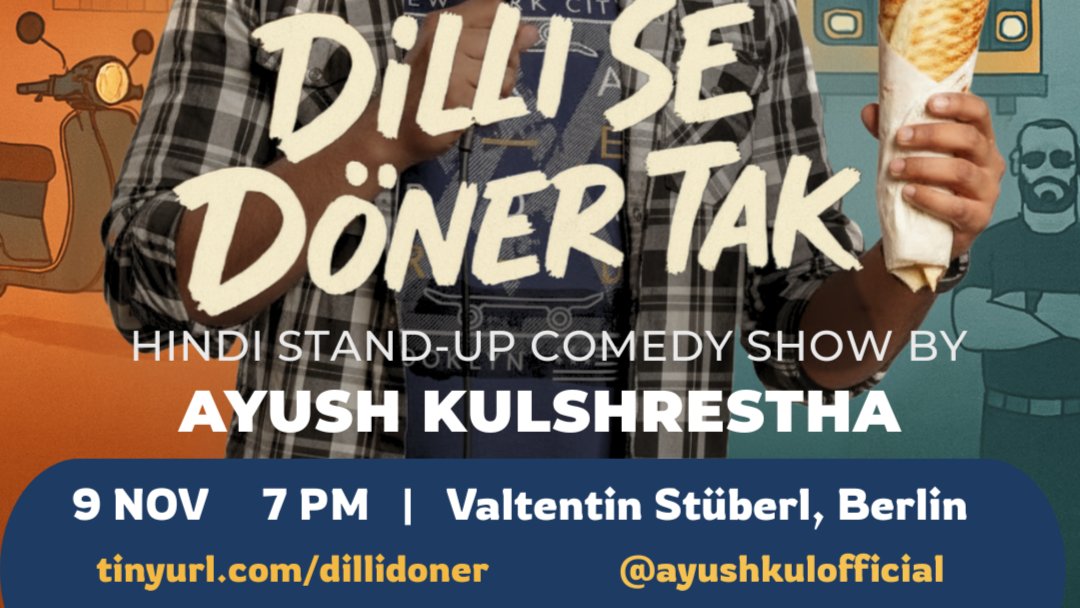 You’ve seen him headline **Desi Democracy – Hindi comedy show** and host Hindi open mics in Berlin, mixing **sharp satire** with **playful crowd work** and **deeply relatable observations.** Now watch **Ayush Kulshrestha** bring it all together in his first solo hour — ***Dilli Se Döner Tak***. After a packed Berlin show last November, this hour is back for one special night — before heading out to other German cities. 🗣️ *Performed in Hindi / Hinglish.* **About the show** A rib-tickling and very Desi comedy journey from Delhi to Berlin — navigating culture shocks, job hunts, dating disasters, getting diagnosed with ADHD, dealing with indian parents and political absurdities sprinkled along the way. Expect **smart satires, dark-ish truths, and some delightful honesty** about life between two worlds. The night wraps up with a **Bollywood jam session**, where the audience joins in for a sing-along — turning the show into a complete Desi evening. **About the comic** Ayush started performing stand-up in 2019 and, since 2022, has been running Berlin’s only Hindi comedy line-up show, **Desi Democracy**, which has toured to Munich and Erlangen with sold-out performances. After opening for **Atul Khatri, Karunesh Talwar, and Gaurav Gupta**, he’s now back home in Berlin with his first full-length solo special. 🎥 Check out clips on Instagram: https://in[Instagram.com/ayushkulofficial](https://instagram.com/ayushkulofficial) 🗓 **Sunday, 25 January** **⏰ 7:00 PM – 8:30 PM** (Doors open at 6:30 PM) 📍 **Valentin Stüberl, Donaustraße 112, Berlin – Neukölln** 🍻 **Please support the bar – cash only!** Come for the jokes, stay for the music, and leave with your face hurting from laughter.