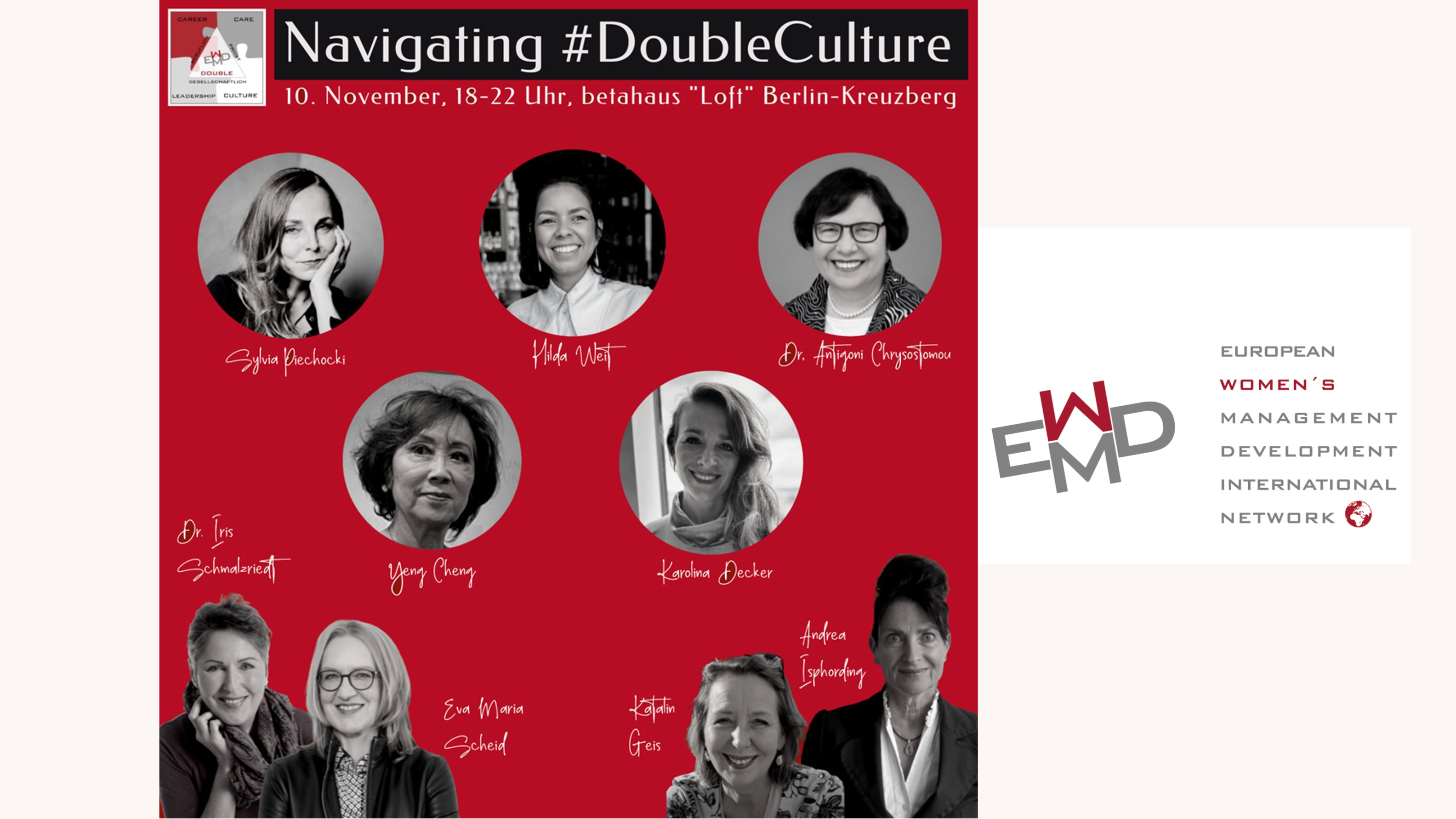 Liebe EWMD-Mitglieder, liebe Interessierte, im Rahmen unserer Initiative **#DoubleCulture** laden wir vom EWMB Berlin Brandenburg euch herzlich zu unserer **chapterübergreifenden Panel-Veranstaltung** am 10. November 2025 ab 18 Uhr ins schöne betahaus "Loft" Kreuzberg ein. Es erwarten Euch **fünf inspirierende Panelistinnen**, **zwei erfahrene Moderatorinnen**, spannende Diskussionen und vielfältige Möglichkeiten zum Austausch. Im Mittelpunkt steht diesmal die Frage: **Wie können wir aus dem Spannungsfeld und den Erfolgsgeschichten von Frauen verschiedener Herkünfte Bereicherung, Mut und Energie schöpfen – und welche Lehren können wir alle daraus ziehen?** Unsere Panelistinnen teilen ihre Strategien und persönliche Erfahrungen. Freut auch auf wertvolle Impulse, die zum Mitdenken, Mitdiskutieren und Handeln anregen. **Konkret werden wir uns mit diesen Aspekten beschäftigen:** * **Wurzeln:** Wo komme ich her – wie bin ich geprägt – was zeichnet mich aus? * **Wandel:** Inwieweit habe ich mich durch eine weitere Kultur verändert? * **Wirkung:** Was kann ich bewirken – wo liegen Synergien und Chancen? Es gibt auch Raum für den Austausch in kleinen Gruppen über eure eigenen Erfahrungen und eure Ansätze für das Navigieren in komplexen Umfeldern. Und nicht zuletzt werden wir die Frage diskutieren, wie wir uns im EMWD-Netzwerk und darüber hinaus gegenseitig unterstützen und gemeinsam positiv-konstruktiv zur gesellschaftlichen Veränderung beitragen können. **Unsere Panelistinnen:** * **Hilda K. R. Weit** \| Senior Manager Corporate Development \| Regional Director Mitte Cornell Hotel Society Germany \| [LinkedIn](https://www.linkedin.com/in/hildaweit/) * **Karolina Decker** \| CEO & Co\-Founder @finmarie \| @SchulGold I Top 50 Woman Entrepreneurs Germany \(Handelsblatt\) I Zukunftsmacherin 2024 I Autorin "Finanzen sind weiblich" I @Mind the Gap e\.V\. \| Advisory Board \| Business Angel Investor \| [LinkedIn](https://www.linkedin.com/in/karolina-decker-b1ba6813/) * **Sylvia Piechocki Gonzalez** \| Unternehmerin \| Founder von Golden Hoops Films & more \| Coach und Schauspielerin \| Tanz \- und Körpertherapeutin \| [LinkedIn](https://www.linkedin.com/in/sylvia-piechocki-gonzalez-a3642770/) * **Vera Kurniawan** Senior Project Manager @Plath GmbH & Co\. KG \| Leitung strategischer IT\-\, Investitions\- sowie Forschungs\- und Entwicklungsprojekte im internationalen Umfeld \| [LinkedIn](https://www.linkedin.com/in/vera-kurniawan-68431898) * **Yeng Cheng** \| Geschäftsführerin GLA German Light Aircraft GmbH \| vorm\. Inhaberin „Jointculture“ für Sprachvermittlung\, Themenreisen\, Business Consulting \| Beirat DTG Deutsch\-Taiwanische Gesellschaft \| [Web](https://www.german-light-aircraft.com/) **Moderation:** * **Dr. Iris Schmalzriedt** \| Coaching\, Training\, Beratung\, \(OE/PE\) \| Be the change you want to see in the world\. Just do it\! \| [LinkedIn](https://www.linkedin.com/in/iris-dr-schmalzriedt-582198330/) * **Katalin Geis** \| KaleidosGlobe Relocation\*Training & Consulting \| Personaltransfer internationaler Fach\- und Führungskräfte \| [LinkedIn](https://www.linkedin.com/in/katalin-geis-a264b68/) **Begrüßung:** * **Eva Maria Scheid** \| Consulting\, Coaching\, Training\, Therapie \| Klar führen\, Konflikte navigieren\, Resilienz stärken – für Tech\-Führungskräfte \| Business Angel \| [LinkedIn](https://www.linkedin.com/in/evamariascheid/?locale=de_DE) Einlass ab 18 Uhr \| Start 18:30 Uhr \| Ende 22:00 Uhr Für Getränke und Fingerfood ist gesorgt. !!!!! Achtung !!!!!!! Dieses Event ist konstenpflichtig !!!! **EWMD Mitglieder zahlen 20 Euro** **Gäste zahlen 29 Euro.** Anmeldung und Bezahlung über https://ger.ewmd.org/members/evr/reg_event.php?orgcode=EWM4&evid=46920813 Wir freuen uns auf einen inspirierenden Abend mit Euch! Eva Maria, Hilda und Iris (Chapter Berlin-Brandenburg) Andrea & Katalin (Chapter Nord)