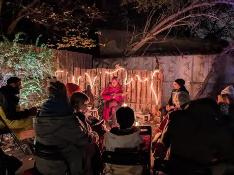 The fairy tale evenings take place outdoors in the newly redesigned theater courtyard around a warming campfire. In addition to drinks, delicious soup and vegetarian bread and butter are offered during the intermission.