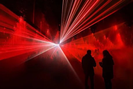 Light and media artist Christopher Bauder’s expansive installation emerges from the interplay of natural motifs, industrial architecture and kinetic light art.