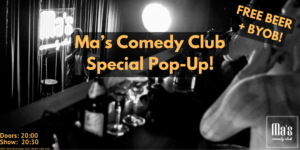 Join us for a power line up of some of Berlin’s best English-speaking comedians at Ma’s Comedy Club. One of Berlin’s most legendary comedy spots, Ma’s Comedy Club is back for a few shows only, ready to deliver side-splitting performances and unforgettable moments. The spirit remains unchanged, promising an evening of rib-tickling jokes, stand-up brilliance, and unforgettable memories. Join us at our new location for an evening of comedy that will leave you grinning from ear to ear. Grab your tickets now and secure your spot for a night of uproarious entertainment and free beer at Ma’s Comedy Club! Indulge in the Laughs with your preffered Drinks – This show is BYOB The business model of our show is that it is crowd funded, so you watch the show first and afterwards pay what you can. We like to recommend 15€ per person and 7€ for students. PLEASE NOTE, THE LOCATION OF MA’S POP-UP COMEDY CLUB IS BRÜSSELER Str. 37, 13353 Berlin Doors open at 8:00 pm Show starts at 8:30 pm Location: Brüsseler Straße 37, 13353 Berlin