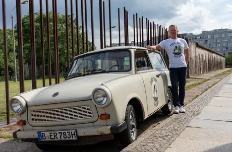 Markus Wiehler, a real East Berliner born in 1968, leads a walk through the historically significant Berlin Wall Memorial on Bernauer Straße – right into the former death strip. During the walk, he vividly conveys the sense of oppression that many young people experienced in East Germany in the late 1980s.