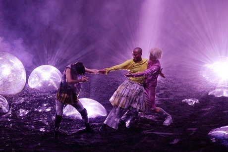In “GLITCH WITCH”, choreographer Meg Stuart, dancer Omagbitse Omagbemi, and composer/musician Mieko Suzuki meet in a sparklingly desolate, enigmatically burned-out landscape.