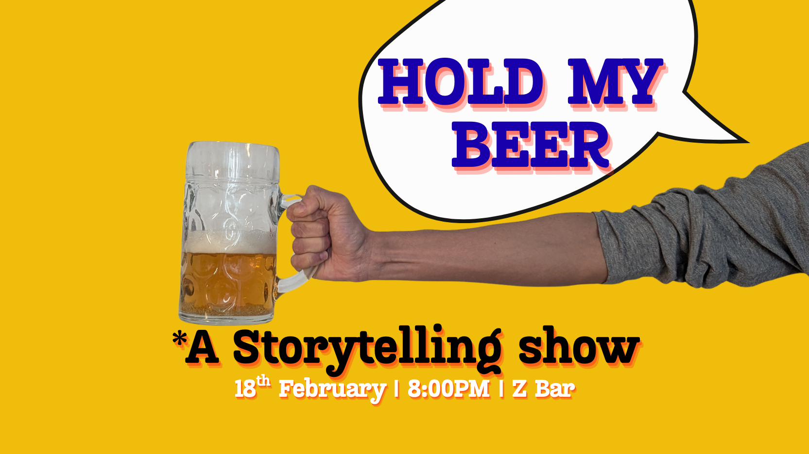 Get ready for an unforgettable night of laughs, drama, and jaw-dropping tales at Hold My Beer! This in-person event brings together storytellers who share their wildest experiences, all live and up close. Whether you're here for the epic fails, crazy adventures, or just a good time, this show’s got you covered. Grab your friends, pull up a seat, and prepare to be entertained like never before! WHEN: Door opens at 7:30, show starts at 8:00 PM and ends at 10 PM with a 10 mins break in between. LOCATION: Z Bar, Bergstraße 2, 10115 Berlin LINE UP: Will be added soon. It includes experied and new standup comedians. If you want to perform at the show please reach out to us via instagram. We would love to put up 2 audience members on the stage to tell a story for the first time. We have limited seats so please make your free reservation via Eventbrite before we run out. We take donations for the show to keep the lights running, paying the rent and keep running the show. Suggested donations 10-15 Euros. Stand up comic Nav Jain