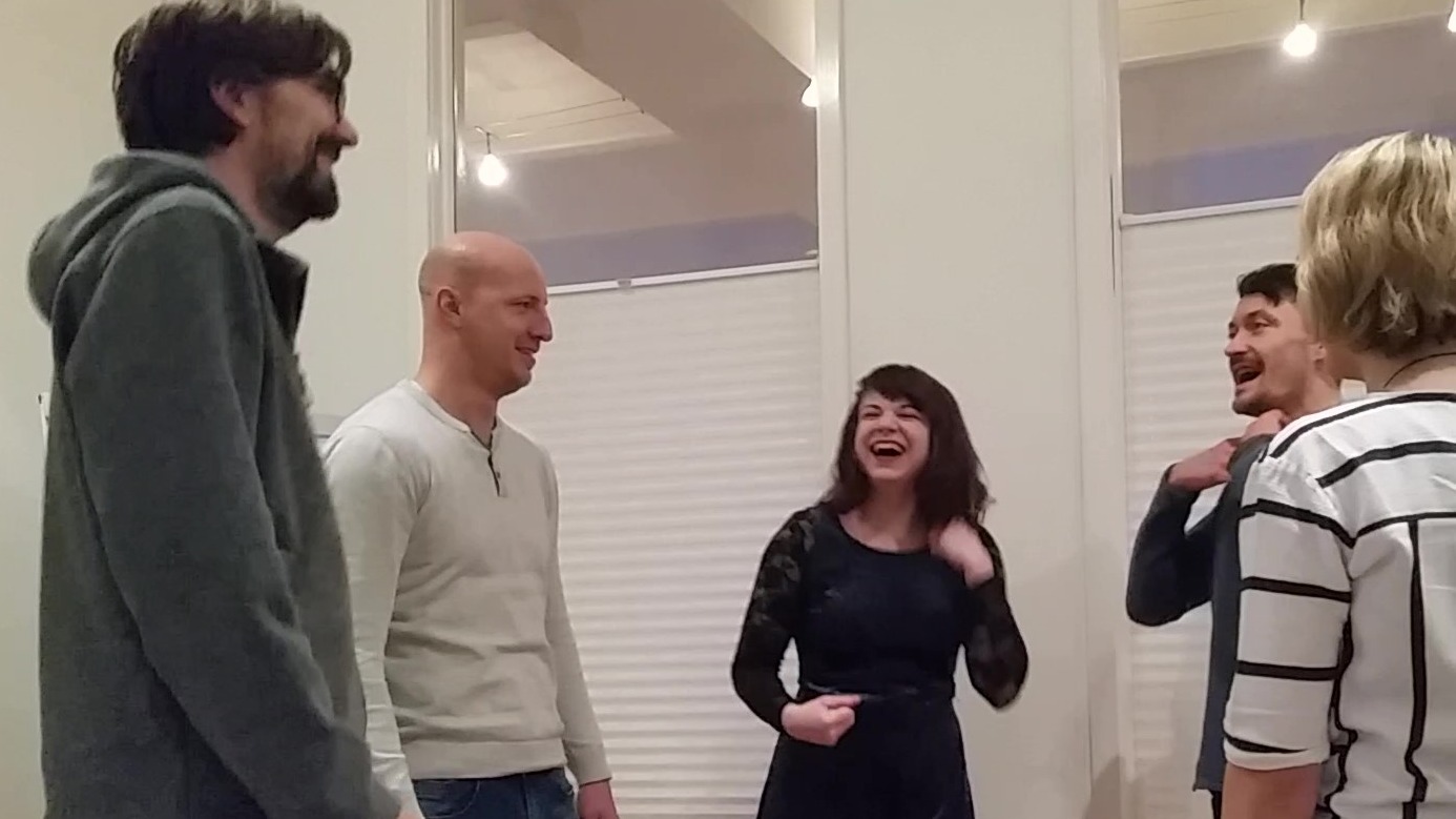 **Buchung und Zahlung bitte vor Kursbeginn auf** https://www.eversports.de/org/activity/84e234af-f599-4b2f-851f-9185cea7f887 \- Keine Vorkenntnisse nötig Improtheater macht nicht nur viel Spaß, es fördert auch die Kreativität, Spontanität und Flexibilität; es verbessert die Konzentration, die Fähigkeit zuzuhören und die Fähigkeit, selbstbewusst in der Öffentlichkeit zu sprechen. Es hilft uns, leichter Entscheidungen zu treffen und auf unsere Intuition zu hören und zu vertrauen. Regelmäßige Teilnahme an Improtheaterkursen hat einen positiven Einfluss darauf, wie unser Gehirn funktioniert – nicht nur im Kurs, sondern auch draußen in der echten Welt. Impro verbessert unsere Fähigkeit, schnell auf Informationen und Konzepte aus allen Ecken unseres Bewusstseins zurückzugreifen und sie auf neue Szenarien und Herausforderungen anzuwenden. Und das wichtigste: Improtheater ist witzig und wird dich zum Lachen bringen! Und Lachen ist natürlich sehr gut für die Gesundheit. Unsere Workshops finden in kleinen Gruppen statt und sind sorgfältig strukturiert, um den Teilnehmer\*innen eine Reihe von Fähigkeiten beizubringen, die es ihnen ermöglicht, am Ende des Workshops selbstbewusst an längeren Szenen und Übungen teilzunehmen. Preis: 30 € Lehrerin: Teodora Fragen bitte per Email an kayherm@lechatnoirberlin.de