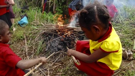 Catching fish and roasting potatoes: Grilled fish tastes good to many children, especially if you have caught it yourself like the children of the Ye'kwana.
