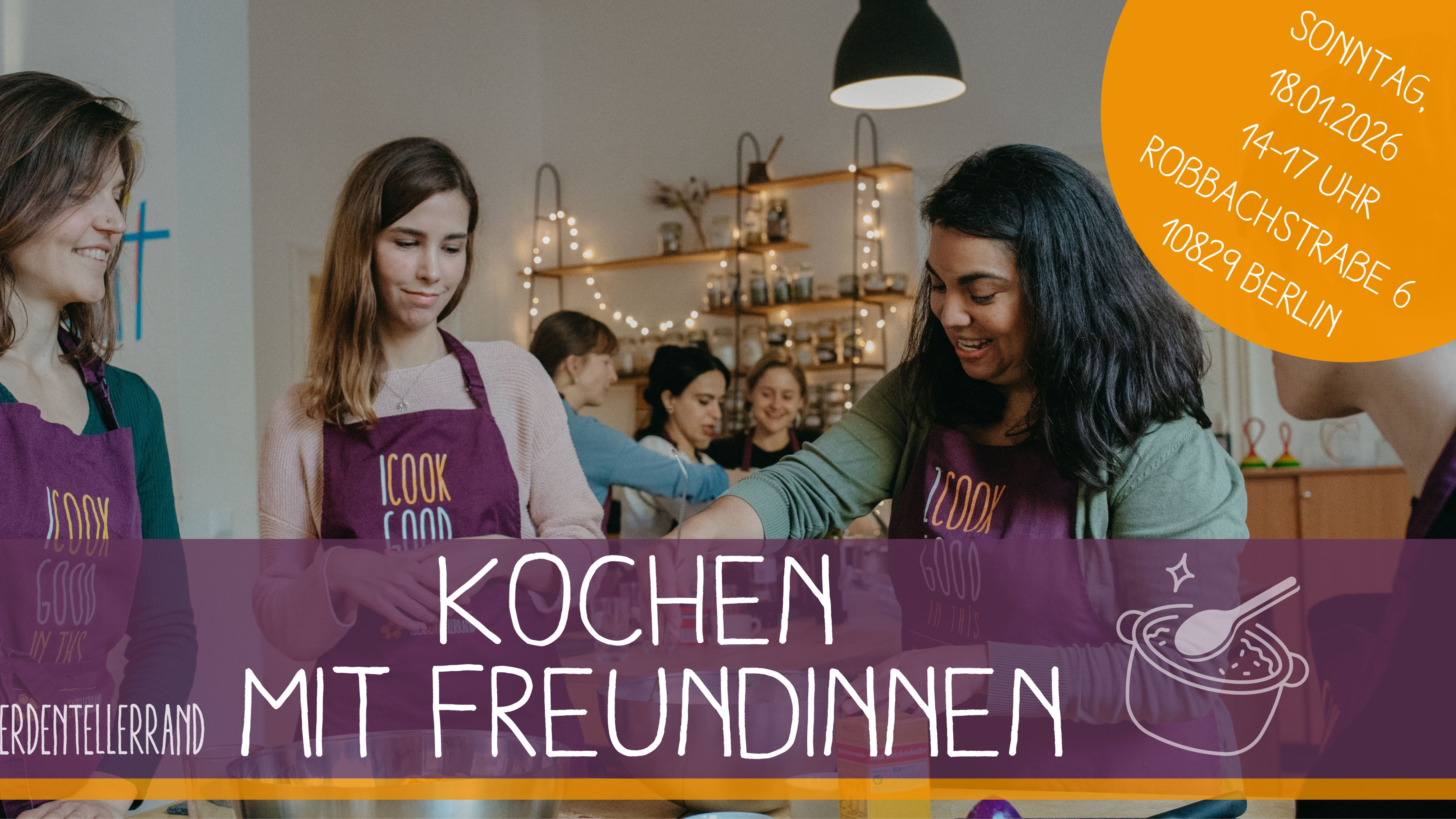 \*\*\*NUR FÜR FRAUEN\*\*\*(للنساء فقط)\*\*\*ONLY WOMEN\*\*\* Liebe Freundinnen\*, am Sonntag, den 18. Januar 2026 findet das nächste „Kochen mit Freundinnen“ statt! Diesmal kochen wir leckere Gerichte zusammen und wollen einen schönen Nachmittag gemeinsam in unserem schönen Kitchen Hub bei Über den Tellerrand verbringen. Beginn ist um 14 Uhr. Wir freuen uns auf euch! ![🧡]() Anmeldung unter: [https://forms.cloud.microsoft/e/xmvXdXggzd](https://forms.cloud.microsoft/e/xmvXdXggzd?fbclid=IwZXh0bgNhZW0CMTAAc3J0YwZhcHBfaWQQMjIyMDM5MTc4ODIwMDg5MgABHsr2YjXbZRZSsflVBNKxQfmI0a-oIlm1lscsql9ClQRYAkyDTgA6r4fnpV_z_aem_x_UOhzrZZOx7TQRx59BsPQ) Wann: 18.01.2026, 14:00-17:00 Uhr Wo: Roßbachstraße 6, 10829 Berlin Kochen mit Freundinnen ist Teil des Projekts Eine Prise Menschlichkeit von Über den Tellerrand und wird gefördert aus Mitteln der Deutschen Fernsehlotterie und der Heidehof Stiftung. \*\*\*\*\*\*\*\*\*\*\*\*\*\*\*\*\*\*\*\*\*\*\*\*\*\*\*\*\*\*\*\*\*\*\*\* \*\*\*ONLY FOR WOMEN\*\*\*(للنساء فقط)\*\*\*ONLY WOMEN\*\*\* Dear friends\*, the next ‘Cooking with women’ will take place on Sunday, 16th of November! This time we will cook delicious dishes together and spend a nice afternoon together at Über den Tellerrand. It starts at 2 pm. We look forward to seeing you! ![🧡]() Registration: [https://forms.cloud.microsoft/e/xmvXdXggzd](https://forms.cloud.microsoft/e/xmvXdXggzd?fbclid=IwZXh0bgNhZW0CMTAAc3J0YwZhcHBfaWQQMjIyMDM5MTc4ODIwMDg5MgABHrQFC-VbMg2z-80labuQeZlhUcpUlSPNg6iSMvokQAs0LTH8TfffHie6UF30_aem_oEVodACN6ydhdsNH154VSg) Where: Roßbachstraße 6, 10829 Berlin When: 18th of January, 14-17:00 o’clock Women\* Cooking is part of the project Eine Prise Menschlichkeit by Über den Tellerrand and is funded by the Deutsche Fernsehlotterie and the Heidehof Foundation