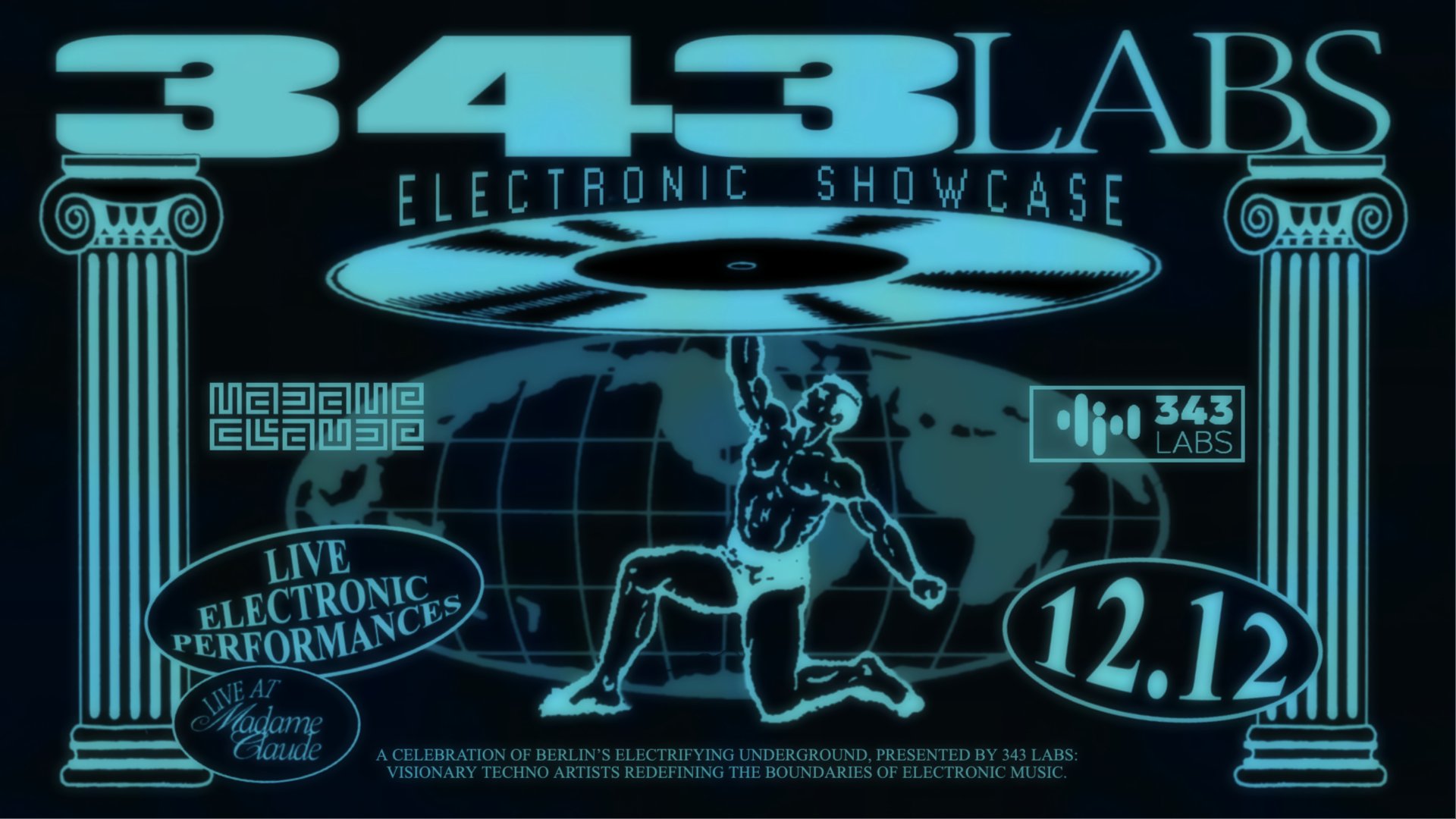 #### **Free entry!** #### **Glimpse the future of innovative music as 343 Labs Berlin 1-Year Program students take the stage at Madame Claude for their debut live electronic performances. Featuring back-to-back live electronic sets, this event offers a first glimpse at brand new sounds by Berlin’s next wave of artists.** 343 m / s (speed of sound) is a celebration of the electrifying pace of Berlin’s underground scene. Presented by 343 Labs, this series showcases forward-thinking techno spinners alongside avant-garde live acts and carefully curated artists who push the boundaries of electronic music. Each event is a dynamic collision of sound, bringing together a singular sample of Berlin’s vibrant, ever-evolving music scene. At its core, 343 m / s serves as a platform for emerging artists and pioneering producers—some of whom are graduates from the 343 Labs music production program—giving these artists the opportunity to showcase their work to an enthusiastic audience. This series promotes our values of inclusivity, excellence, and artistic freedom in the Berlin music scene. Only positive vibes are welcome in our space. In order to maintain a safe space for our community, we will not tolerate any acts of hate, discrimination, or disrespect. Any such acts will lead to removal from the event and a ban from attending future events. [RSVP for an event reminder](https://343labs.de/events/live-electronic-showcase-2/) delivered directly to your inbox.