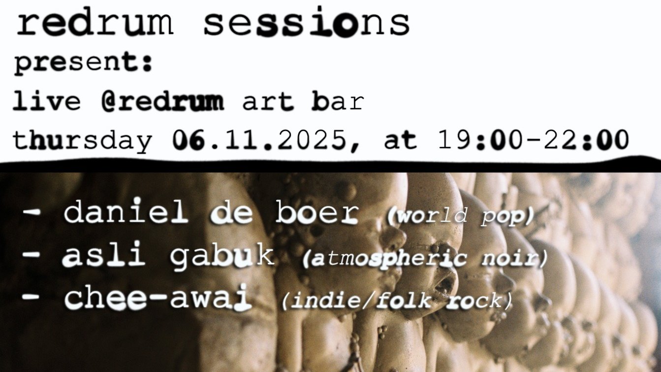Dear music lovers, RedRum Sessions is a Berlin-based event series featuring various brilliant musicians and performers from all corners of the world in one of Berlins coolest cocktail bars; RedRum Artbar. At the RedRum Sessions, we consistently book international Berlin based musicians with different styles and backgrounds, all events are curated and organised by The Traveling Stage. Session number 33 is upon us, and we are planning a nice show for you. This time we are inviting Asli Gabuk to come and perform on our stage again, and for the first time we’re inviting Daniel de Boer to come and perform. RedRum ArtBar Grimmstraße 24, 10967 Berlin Doors 19:00 Music 20:00 - 22:00 Entry 7€-12€ Date: 6.NOV.2025 Asli Gabuk Asli Gabuk is a music producer and composer nourished by Istanbul’s multicultural spirit, bringing together experimental and avant-garde pop blending with the ambient textures with theatrical vocals and storytelling. With over two decades of live performance and studio experience, she has appeared at international festivals such as Documenta 15 (2022, Kassel), Burning Man (2022, Nevada), and SONÀR Istanbul (2024). Now she continues her performances through both solo and collective projects. This is her latest release [https://open.spotify.com/album/6cG7vIVg4zwMFcayJOhBCa...](https://open.spotify.com/album/6cG7vIVg4zwMFcayJOhBCa?si=1L9mS2m4Qw-5pCJULxMXbA&fbclid=IwZXh0bgNhZW0CMTAAYnJpZBEwZ0RlZk5zcFRZSnpIWTJzdwEe5BQrM4OwW-W2hgzRB4Gtkva4BeOV2PcwJvJBas-yMWKQF9tkB4yBD4A0IG8_aem_Ed6O9WNSR5TrkENN5bApdg) Daniel de Boer Award-winning Dutch composer, bassist and singer Daniel de Boer worked many years as a freelance musician (including for the Metropole Orchestra, the Celebrity Edge Theatre Ensemble and Holland Opera), before his desire for starting his own project brought him to Berklee College of Music in Valencia, Spain. In Spain Daniel was able to realise his dream of composing and recording his own album. With a group of top musicians he is now presenting to the world his music, an eclectic mix of cultures and styles that come together in the pop idiom. Music that is in short: world pop. His latest release is an EP called The Turnaround, featuring musicians from all around the world. [https://youtu.be/zd4HU4_vmpE?si=c6Cv6zYcz8i2f2Kd](https://youtu.be/zd4HU4_vmpE?si=c6Cv6zYcz8i2f2Kd&fbclid=IwZXh0bgNhZW0CMTAAYnJpZBEwZ0RlZk5zcFRZSnpIWTJzdwEeGsh49t-zEZFK9hrurUqPEgBSGrNSr0H1zRxICOa8g61AmJYI6FoPFmr1ihk_aem_sfJpnVYRr7Yz4J-9XnXTCg) Chee-Awai Chee-Awai is a Berlin-based Swedish-American artist blending indie folk and classic rock into soulful, guitar-driven storytelling. Performing solo with voice and acoustic guitar, he channels the vintage energy of the 1960s into a modern, heartfelt sound. His debut album The Land of Thirst and upcoming release of his next single Traveling Times highlight his signature mix of warm tones, honest lyrics, and vivid performance style. Here is a clip from one of his performances at RedRum Sessions [https://www.youtube.com/watch?v=OILnl63EvR8](https://www.youtube.com/watch?v=OILnl63EvR8&fbclid=IwZXh0bgNhZW0CMTAAYnJpZBEwZ0RlZk5zcFRZSnpIWTJzdwEeRS-UyiyprkiGKSm3u1xdxAdrTqHDKfiEL4E0xMBRJzkiuSdnpy2IDr7iHOc_aem_fwOwECZrAzhRuxOsxqL6Fw) The event is hosted William Chee-Awai and Mayar Attia as The Traveling Stage.