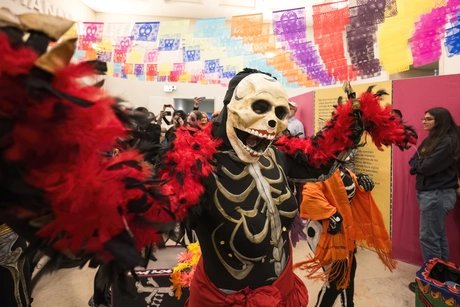 Let the bones rattle! Skeletons of different characters and social backgrounds parade through the audience – on foot, by bicycle, or carrying a coffin on their shoulders – accompanied by a marching band made up of skeleton musicians.