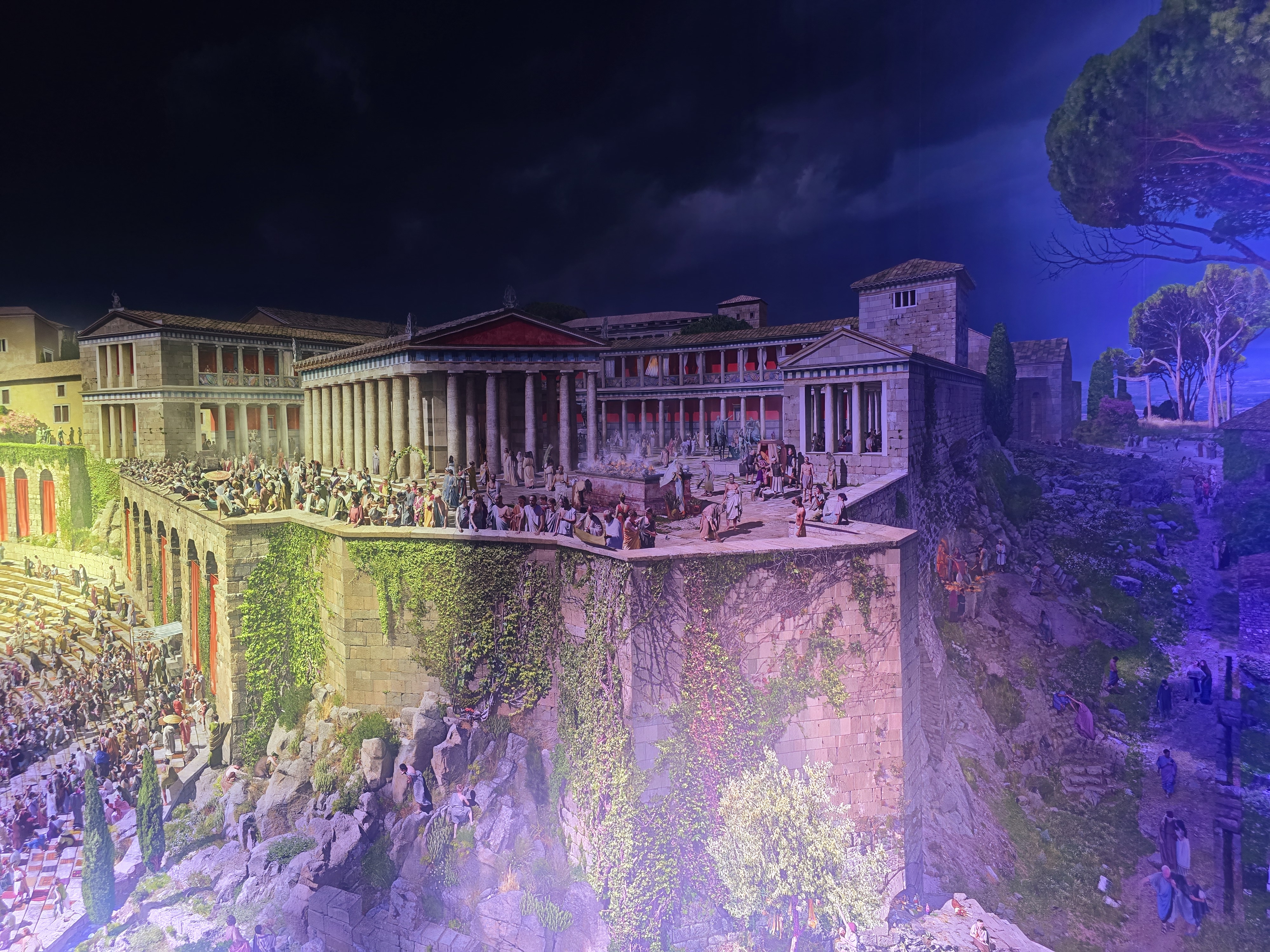 Contemporary structure housing antiquities & a modern, 360-degree painting of ancient Pergamon.