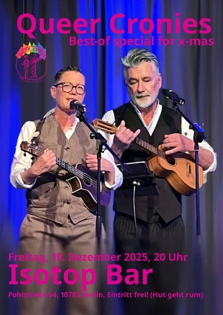 Christmas, but make it queer! Just before the holidays, the Queer Cronies are packing up their favourite songs, old covers and lots of emotion – without any tinsel stress, but with guaranteed glitter.