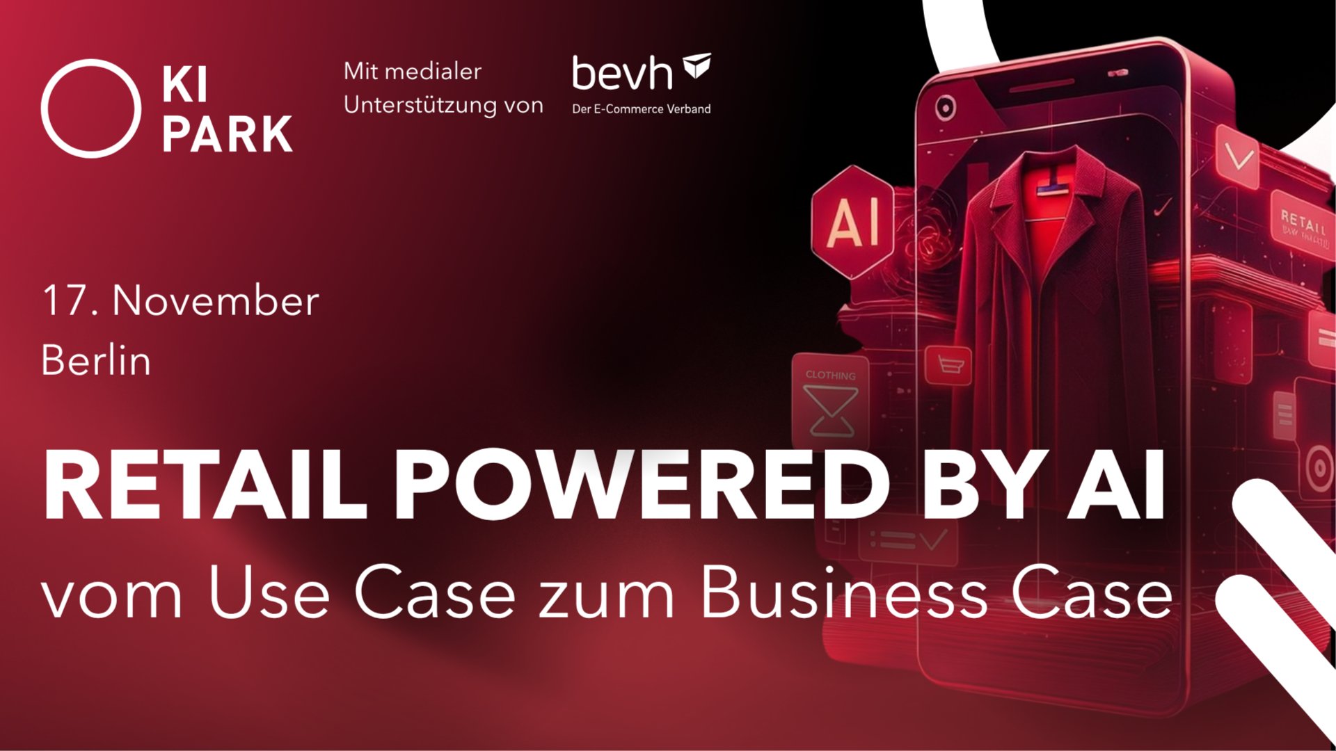 **Bitte beachten**: Ein RSVP auf Meetup allein genügt nicht – [Formular & Bestätigung](https://kipark.typeform.com/to/ccptDpRc?typeform-source=kipark.de) erforderlich. \*\*\*\*\* **Der Handel verändert sich rasant:** verändertes Konsumverhalten, intensiver Wettbewerb und Störungen in den Lieferketten machen KI zum entscheidenden Faktor für Zukunfts- und Wettbewerbsfähigkeit von Handelsunternehmen. Erhalten Sie praxisnahe Einblicke, **wie KI entlang der Wertschöpfungskette im Handel erfolgreich eingesetzt wird**, und lernen Sie **Trends kennen**, die die Zukunft der Branche gestalten. Profitieren Sie von wertvollen Impulsen, um Ihr Unternehmen **weiterzuentwickeln, wettbewerbsfähig zu bleiben und Prozesse effizienter zu gestalten**. Freuen Sie sich auf **Einblicke führender Handelsunternehmen, fachlichen Austausch** und neue Kontakte zu Impulsgeber:innen der Retail-Innovation. **Programmhöhepunkte:** * **Agentic Commerce & Branded Experiences** – die doppelte Zukunft des Handels, Riverty, Gregor Schumacher, Tech Innovation Lead * **Conversational/Agentic AI im Kundenservice & Vertrieb** – was wirklich funktioniert, NICE Cognigy, Ralf Wiesmann, Vice President * **Margensteigerung durch KI-gestütztes Predictive Pricing**, 7Learnings, Eiko van Hettinga, Founder * **Smartere Supply-Chain-Prognosen mit Agentic AI**, Paretos / LASCANA, Julia Vogt, Account Executive **Für wen ist das Event?** Das Event richtet sich primär an Business- und Technologie-Verantwortliche sowie Praktiker:innen im Handel und in der Konsumgüterbranche. Außerdem heißen wir Mitglieder der KI-Community willkommen, die den Wandel in diesem Bereich vorantreiben. **Anmeldung** **Kostenfreie Veranstaltung · Ein RSVP auf Meetup bedeutet keine garantierte Teilnahme.** Zur Teilnahme ist die Anmeldung über dieses [Formular](https://kipark.typeform.com/to/ccptDpRc?typeform-source=kipark.de) erforderlich. Nur bestätigte Teilnehmer\*innen erhalten Zutritt und bekommen eine Bestätigungs-E-Mail. Wir freuen uns, Sie beim Event begrüßen zu dürfen!