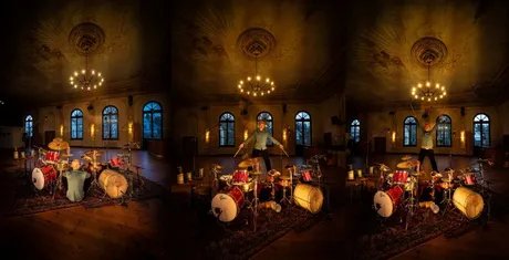 In January 2025, drummer Andi Bühler barricaded himself in the Labsaal with his sound engineer for several days. They used the inspiring acoustics of the hall to record drums, cymbals, cowbells and a wide variety of percussion instruments as naturally as possible. Both sound and images were professionally captured, resulting in films, a CD and a book about the partly composed, partly improvised ‘drum stories’.