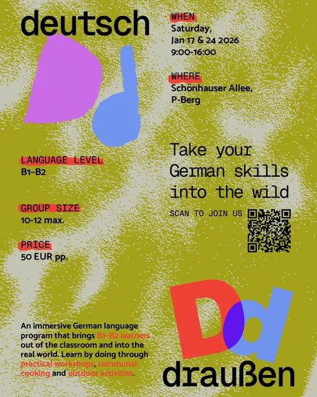 The offer is intended as an alternative to traditional language schools and language cafés. Currently, full-day German retreats are offered for learners at levels B1–B2 with the aim of strengthening language confidence and enabling genuine linguistic immersion.