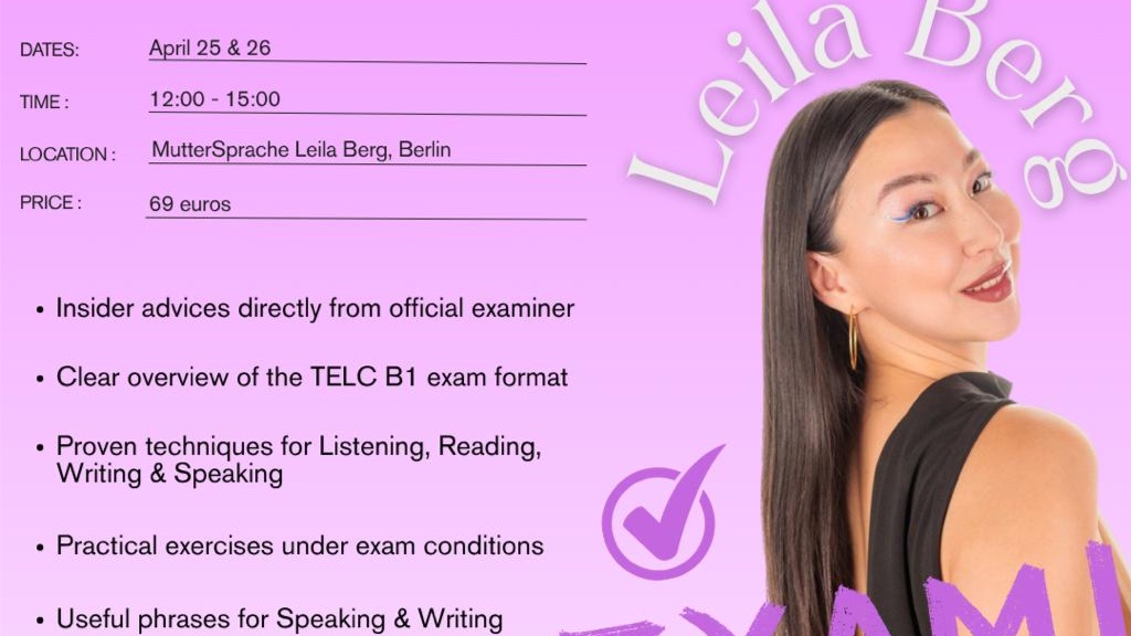 The workshop is led by an official TELC examiner, so you will receive useful insights and tips based on real exam experience.