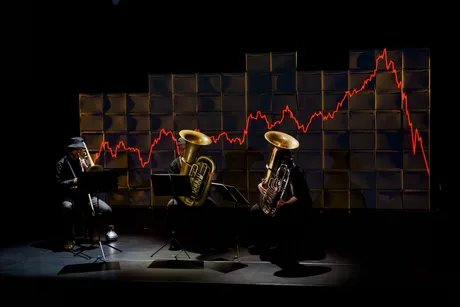 “I get up at 4 am, take the train at 5:45 am and start sorting things at 6 am”. This is how the day of a mail carrier begins, the bringer of news that can change the lives of the recipients, for example, through a credit report, notice of termination or notice of debt collection. Why does money play such a big role in our lives? One thing is absolutely certain: It all got started with debt. While these thoughts shoot through the mind of the mail carrier, Der Markt (The Market) takes shape, Diogenes designs a half-finished utopia out of a barrel while Ayn Rand and Adam Smith argue about the unclear metaphor of the invisible hand via an exchange of letters…
