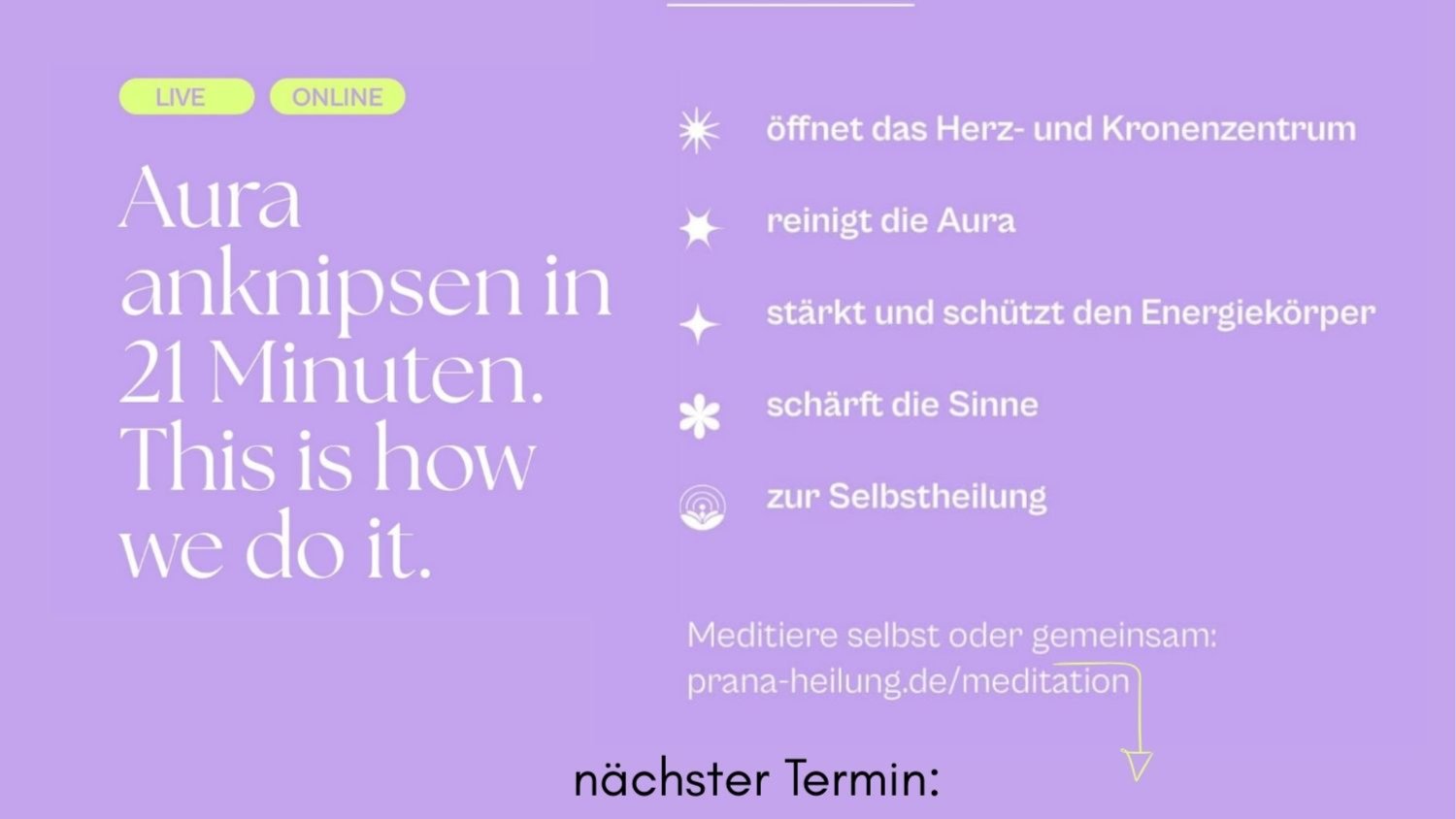 Aufs Meditationskissen setzen, Augen schließen und in Glückseligkeit baden. Stellst auch du dir so Meditation vor? Die Realität sieht oft anders aus. Warum? Weil Meditation nichts ist, was man willentlich herbeiführen oder tun kann. Es ist ganz und gar das Gegenteil von tun, nämlich loslassen und sein. Je verkrampfter du versuchst zu meditieren, desto weiter entfernt ist der ersehnte innere Frieden. Aber was kannst du nun tun, wenn du Meditation nicht tun kannst? Du kannst die optimalen Bedingungen erschaffen, dass sich meditative Zustände von alleine einstellen. Wie? Das üben wir gemeinsam. Und ganz nebenbei