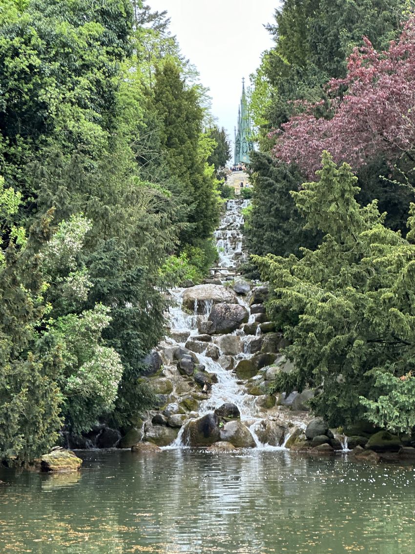 Park with a National Monument for the Napoleonic Wars on a hilltop with waterfalls & viewpoints.