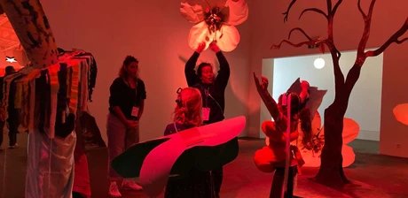 What happens to exhibition materials when an exhibition is over? In the workshop Woherwowohin (Wheretowherefrom), they are reused! In November, you will draw blurred portraits with the help of mirror foils from the exhibition Many Worlds Over by artist Ayoung Kim. The foils give your bodies and faces new shapes, as if you came from another world.