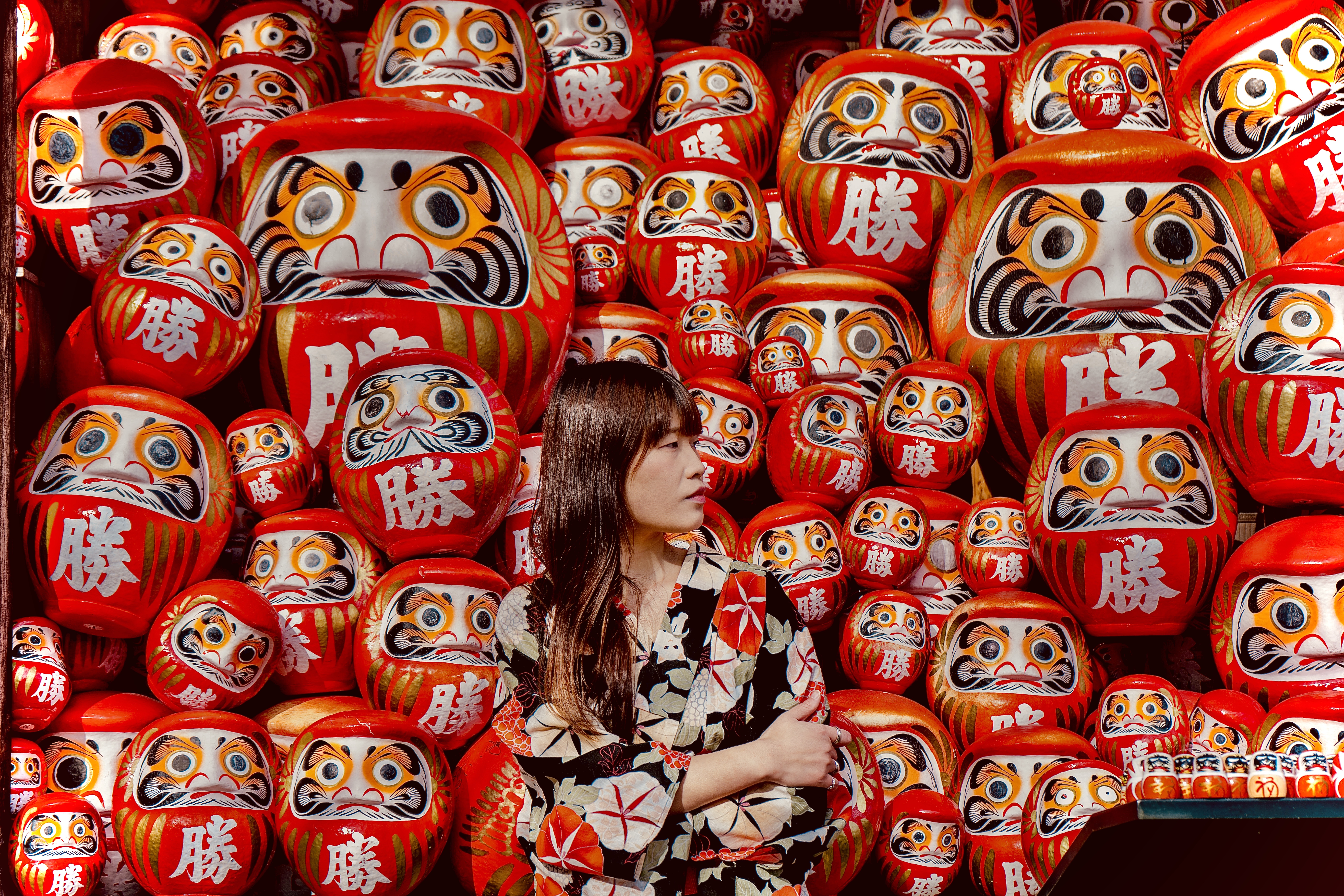 Centuries-old Buddhist temple & gardens known for fall colors & thousands of red Daruma dolls.