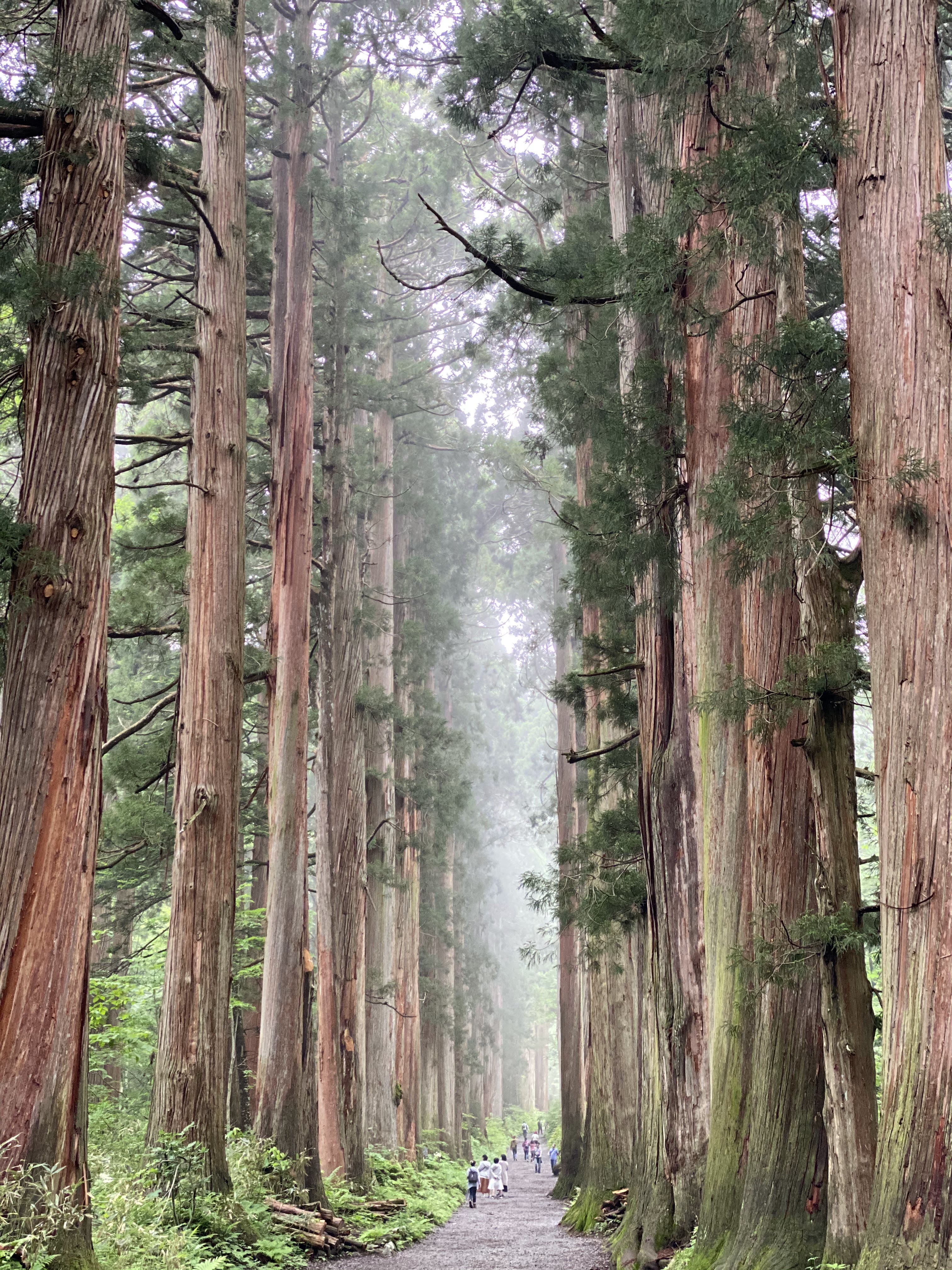 Ancient Shinto shrine on a lush mountain. Celebrated Shinto shrine dating back 2,000 years set among towering cedars on a mountain.