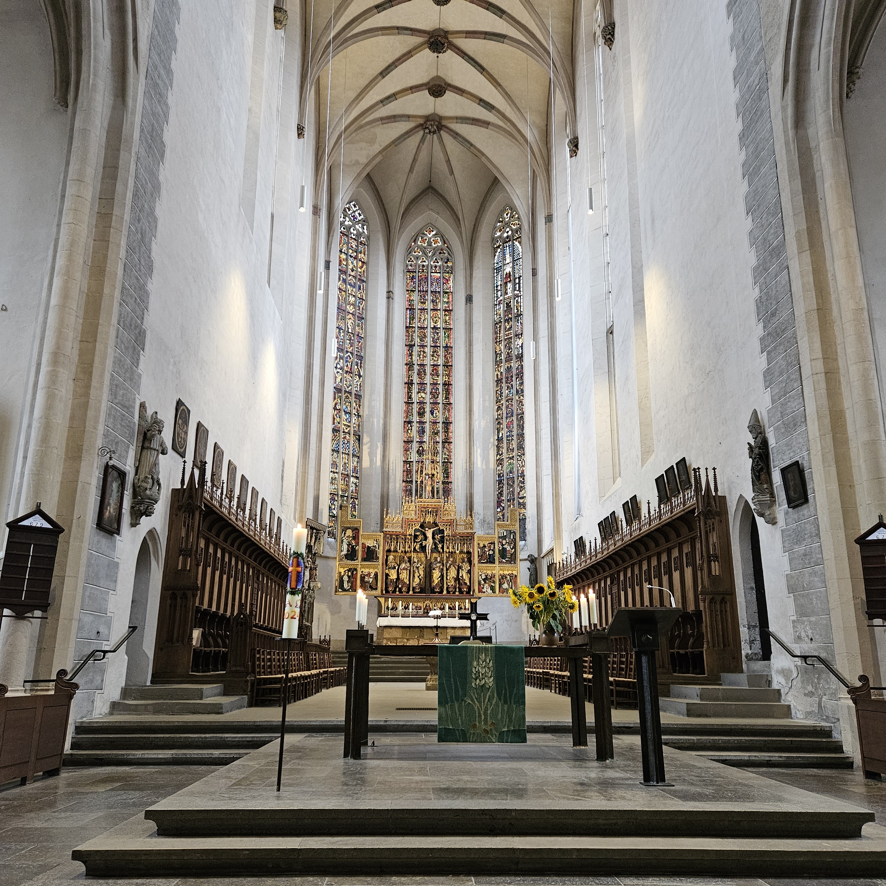 Towering, 2-tower Gothic basilica dating to 1485 & famed for its high altar & religious artworks.