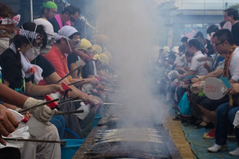 Every year Tokyo has its Sanma (pacific saury) festival. On this day you get a grilled fish completely free of charge! But two things to opt for: either you get up early and have the fish for breakfast (this saves you from standing two or three hours in a line) or you take a book with you and read while waiting. Otherwise you may give up and end up eating fish at a restaurant. But watching this festival is really fun!