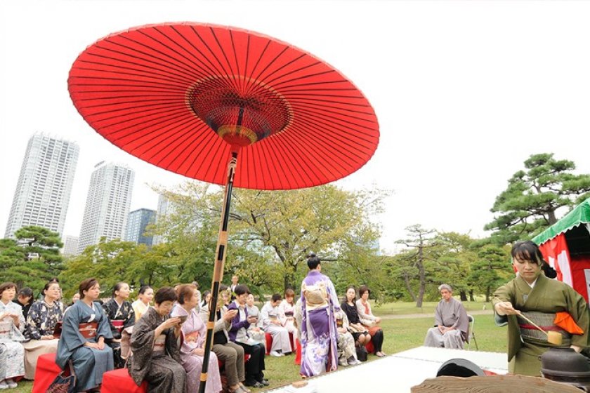 Tokyo Grand Tea Ceremony(東京大茶会) has been held yearly since 2008. Its main objective is to introduce the Japanese tea ceremony, as well as the culture of Edo-Tokyo, to an overseas audience. A tea ceremony is usually a formal event, but Tokyo Grand Tea Ceremony aims to create a lively atmosphere so that everyone learns in a pleasant way. Since its beginning, the event has attracted over 100,000 persons.The event takes place across two weekends, with differing venues:Oct 4 – 5 @Hamarikyu Gardens(9am–5pm)Oct 18 – 19 @Edo-Tokyo Open Air Architectural Museum(9:30am–4:30pm)Access to the Edo-Tokyo Open Air Architectural Museum is free while Hamarikyu Gardens is 300 yen for adults.Visitors will pay a fee attend a tea ceremony — tea and traditional Japanesewagashisweets are included. Also, please note that reservations are required if you want to attend the indoor tea ceremonies (Cha-seki) that will be held at each location.If you don't manage to get a ticket to attend a Cha-seki, don't worry: Tokyo Grand Tea Ceremony has something for everyone! At both locations, it is possible to attend an outdoor tea ceremony called aNodateand the workshops will be available for beginners and children. At Hama-rikyu Gardens a Nodate will be performed with an English interpretation so that foreigners can better understand Japanese tea ceremony. Tickets to attend all these tea ceremonies can be purchased directly at each location.Unlike what is indicated by its name, Tokyo Grand Tea Ceremony is not only about tea ceremonies. Various events are scheduled to suit all tastes: traditional dance performances, demonstrations of Japanese candy art, and many others.If one wants to bring some souvenirs back home, then wagashi, green tea and even some of the tools used during the ceremonies are available for sale at Hama-rikyu Gardens.Perfect for those who want to impress their relatives by showing them what they have just learned!